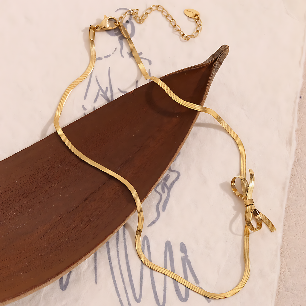 Descubra a sofisticação atemporal com o Colar Choker com Laço Banhada em Ouro 18k, uma peça autêntica da nossa exclusiva coleção clássica de semijoias.