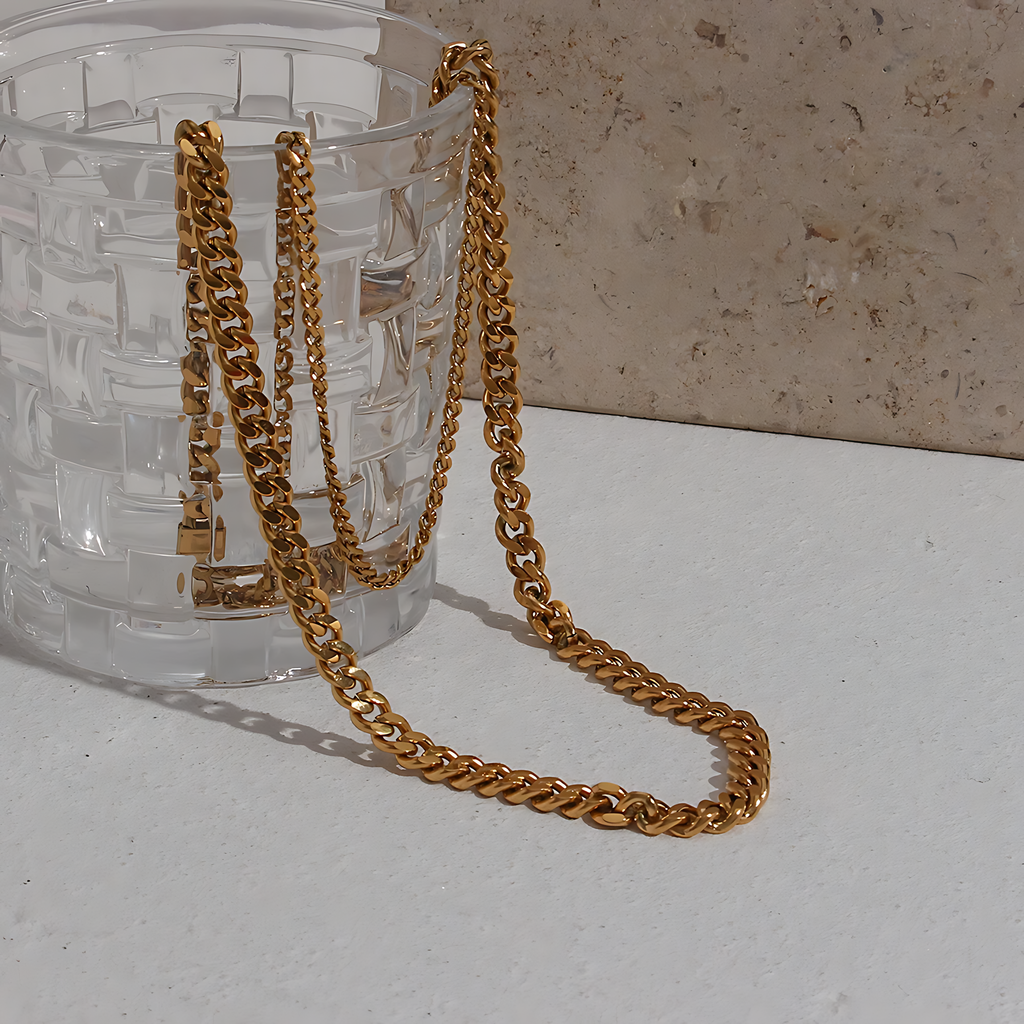 Descubra a sofisticação atemporal com o Colar Feminino Corrente Banhada em Ouro 18k, uma peça autêntica da nossa exclusiva coleção clássica de semijoias.
