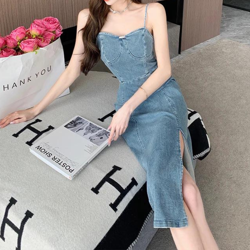 - Detalhes: vestido midi jeans tendência da moda feminina